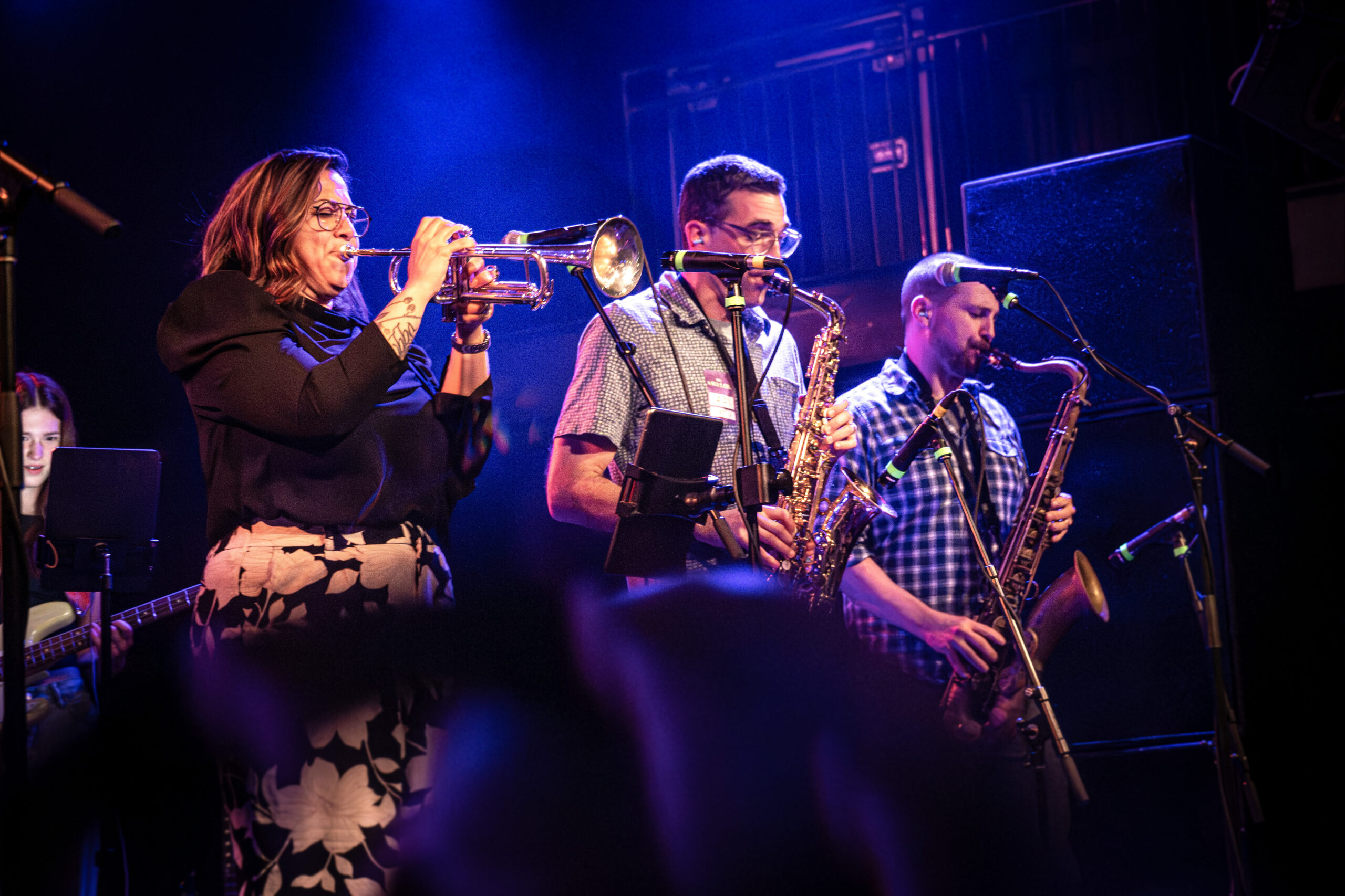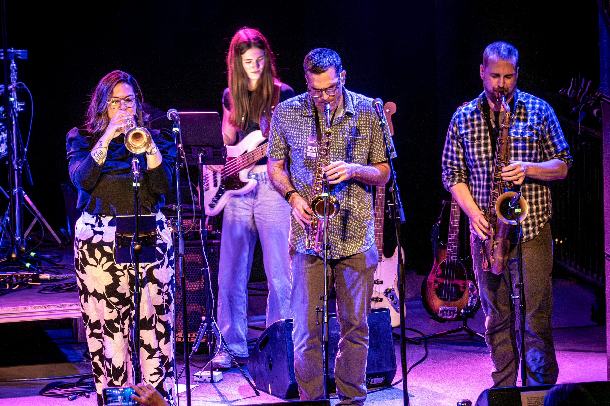 And then there was one of the night’s most impressive stories: filling in on bass was Ruby Golden Tiger, the middle-school-aged daughter of saxophonist Dave Adams. Young or not, she held her own all night—locked into the rhythm section and carrying the groove with confidence well beyond her years. It was one of those “passing the torch” moments that didn’t feel symbolic—it felt real.