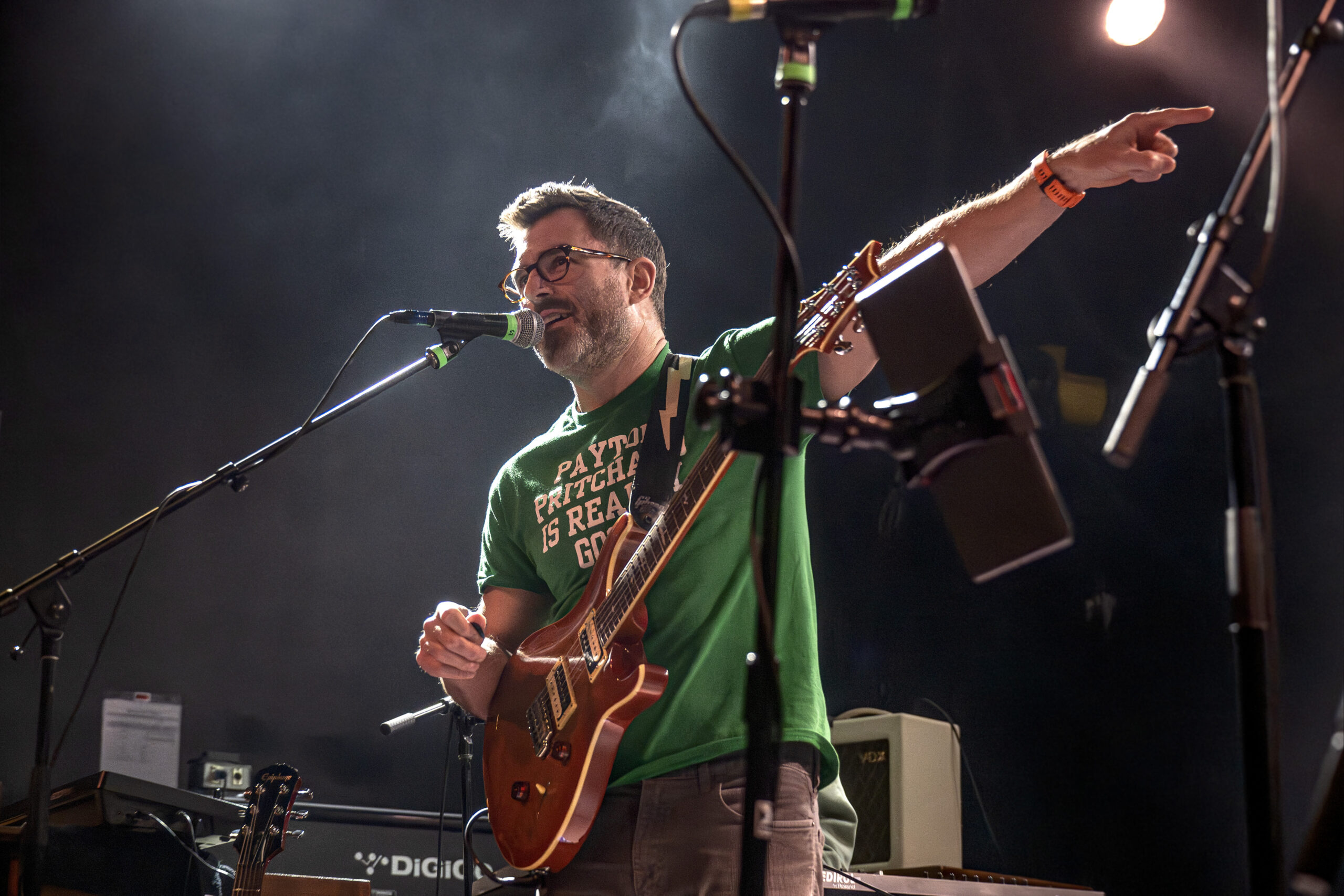 Enter Aaron, the band’s former tour manager turned local legend, now owner of Gracie’s Ice Cream. Dubbed “AC Chillin” (and affectionately, “the ice cream man”), he stormed the stage with full confidence, dropping a call-and-response rap riffing on O.P.P. by Naughty by Nature—subbing in “AGP” to the crowd’s delight. The band even orchestrated a moment where the entire room flipped him the middle finger for a photo. It was ridiculous, communal, and perfectly on-brand.