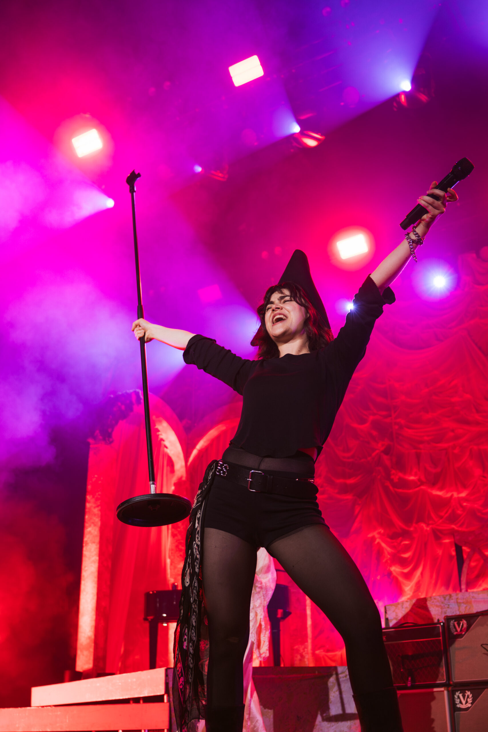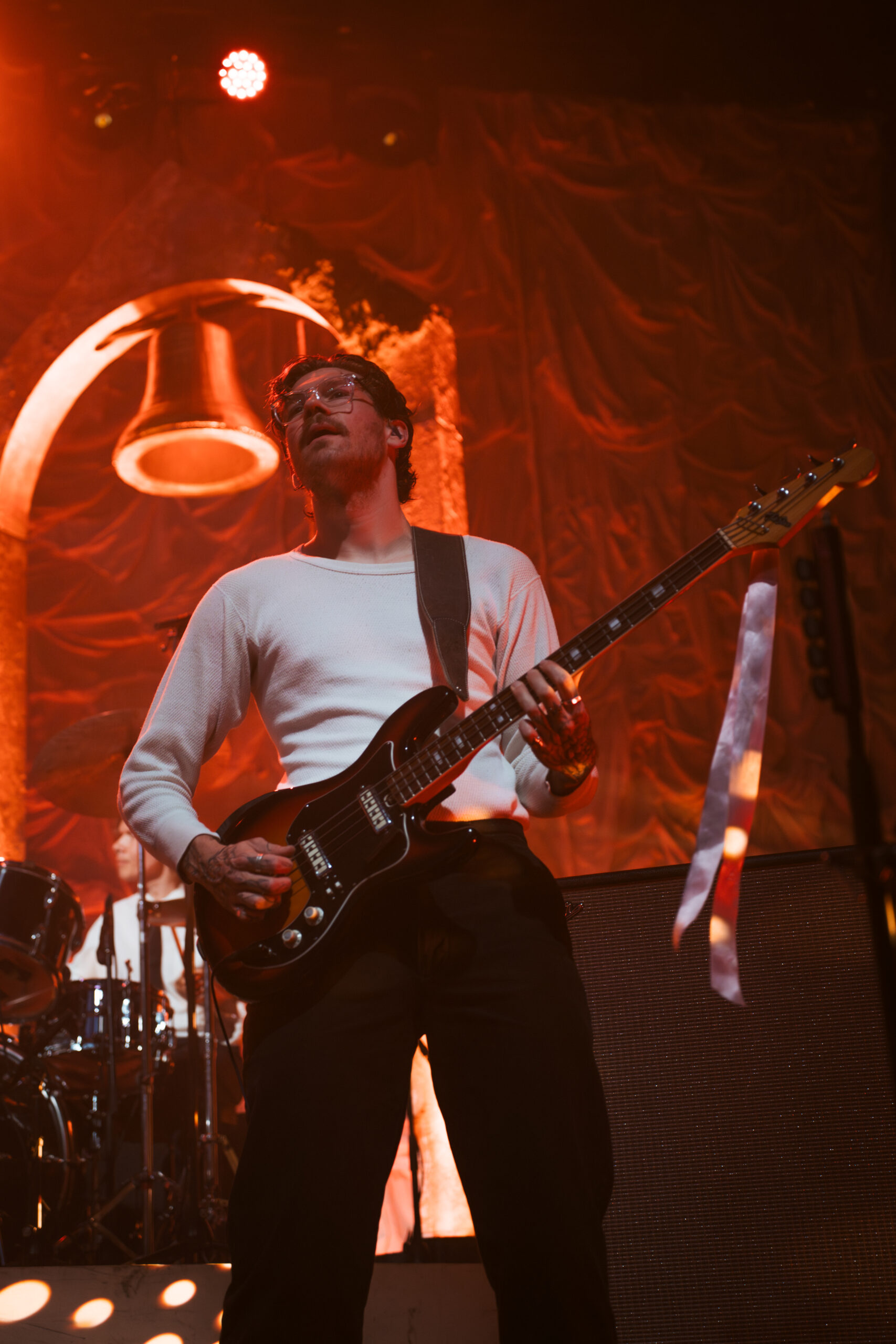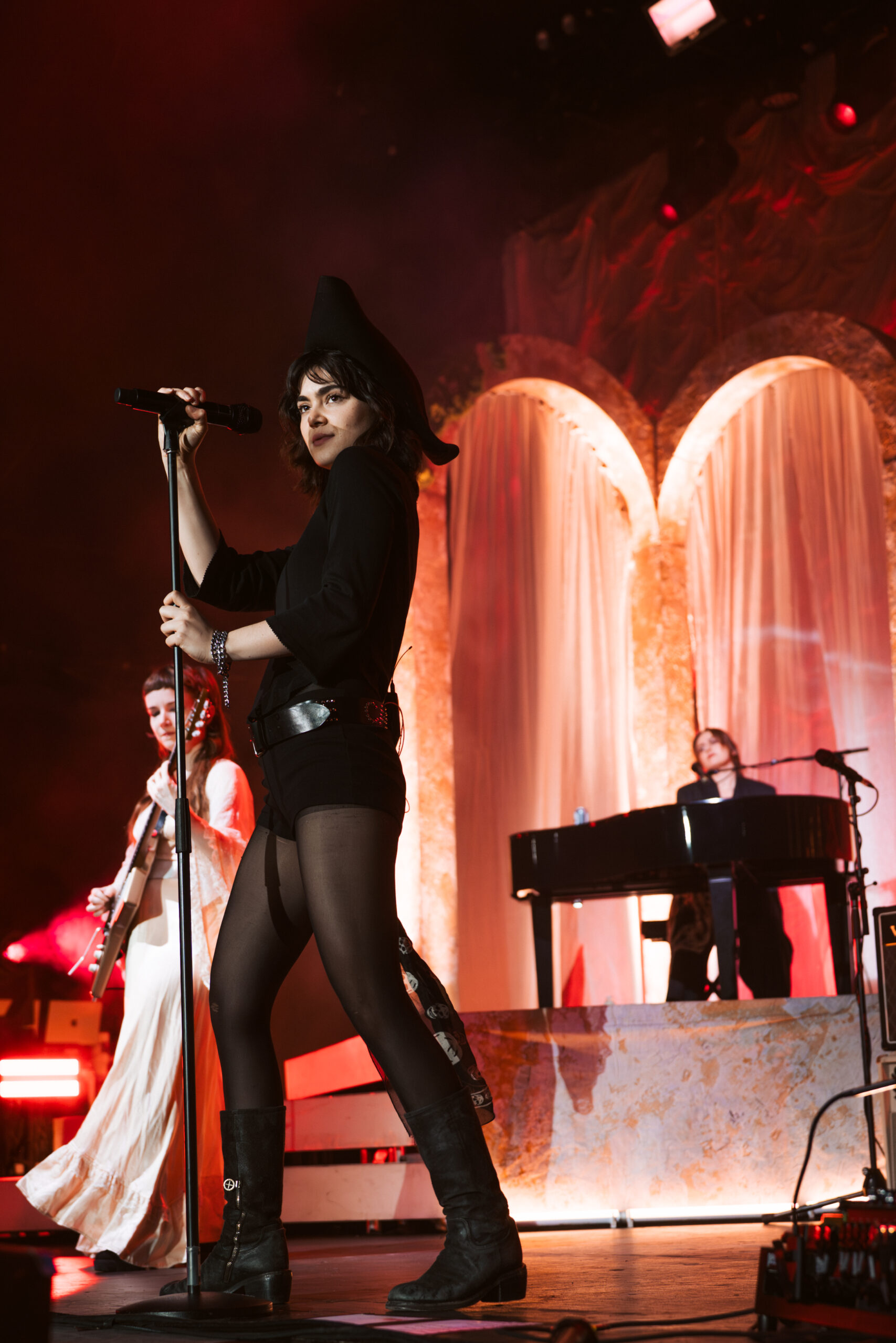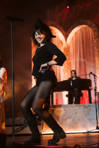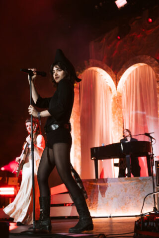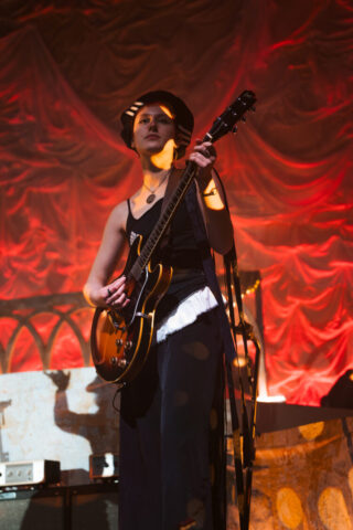 The band’s performance is very reminiscent of a theater show, with elaborate set design, melodies, and songwriting that would fit right in as a production in London’s West End. Each song is written and performed in such a theatrical way, enhancing Morris’ naturally incredible stage presence. Continuing the theatrical feel, one audience member held a sign that said “Participate in 24-hour Shakespeare,” with Sonnet 115 written on the back for Abigail to read. The fan asked her to help with a challenge to read every Shakespeare play and sonnet in 24 hours. Her line delivery was so spot-on and beautiful that I was surprised to learn she was never a theater kid.